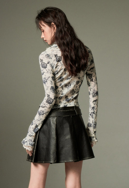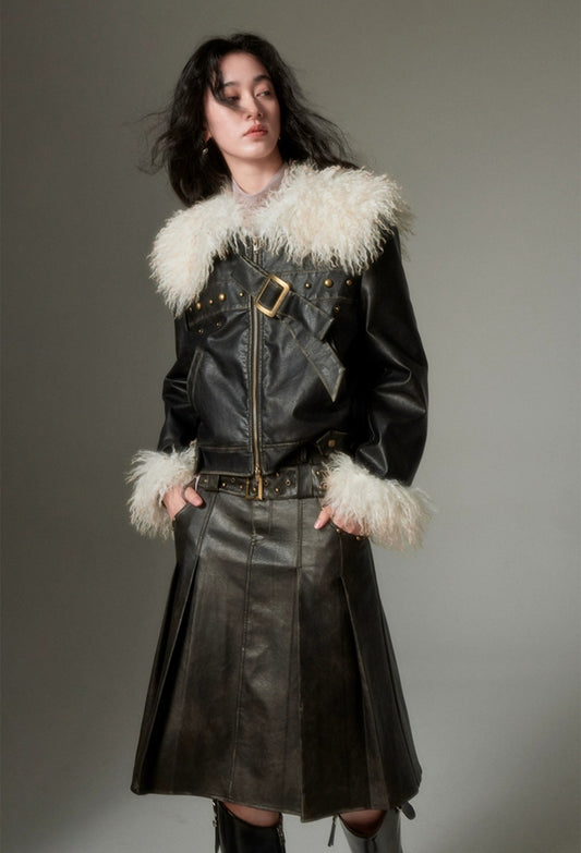 nu312 Retro Blue Butterfly Permed Fur Leather Jacket / Skirt