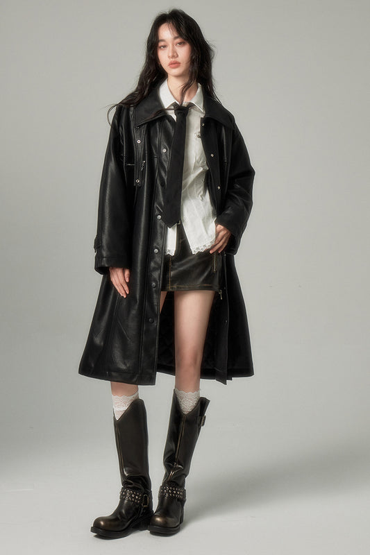 nu226 "Dust of Memory" retro tea-green leather short jacket