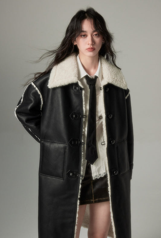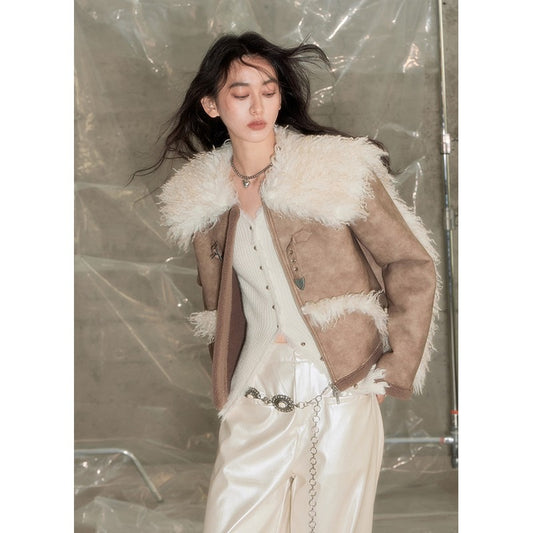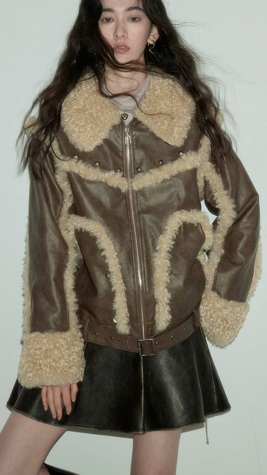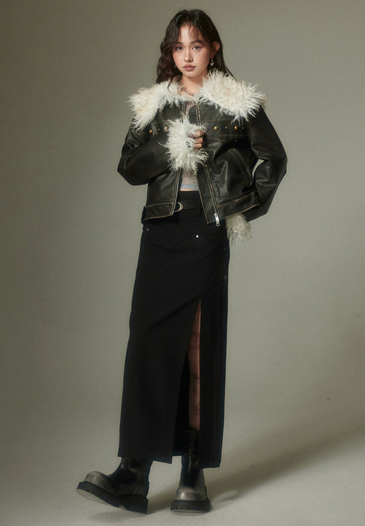 nu312 Retro Blue Butterfly Permed Fur Leather Jacket / Skirt