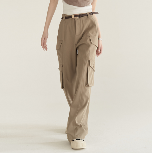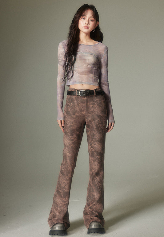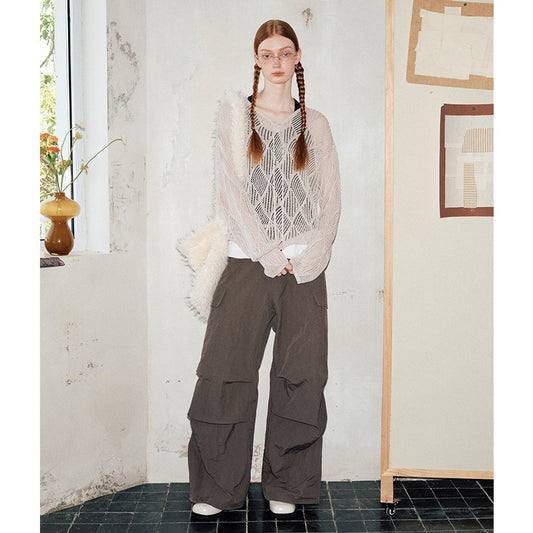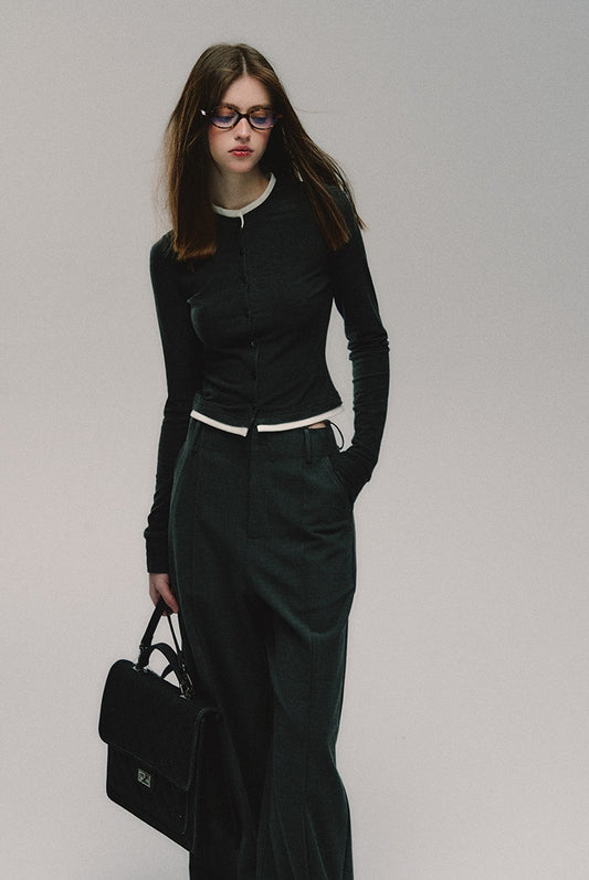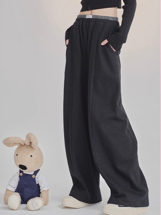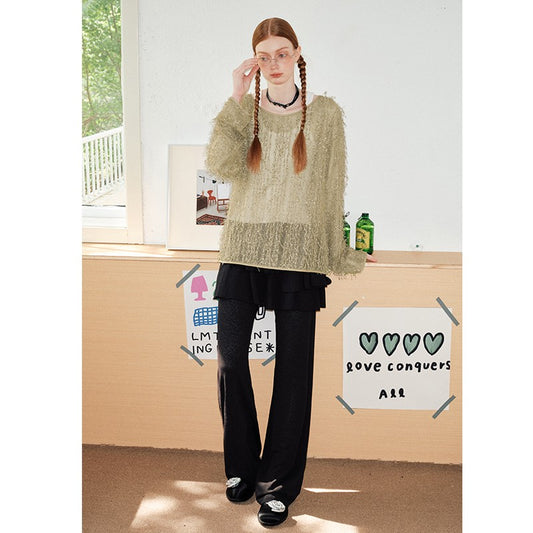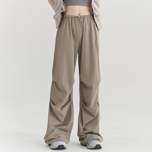 nu250 "Linear Breath" Low-waist Raw-Edge Casual Pants