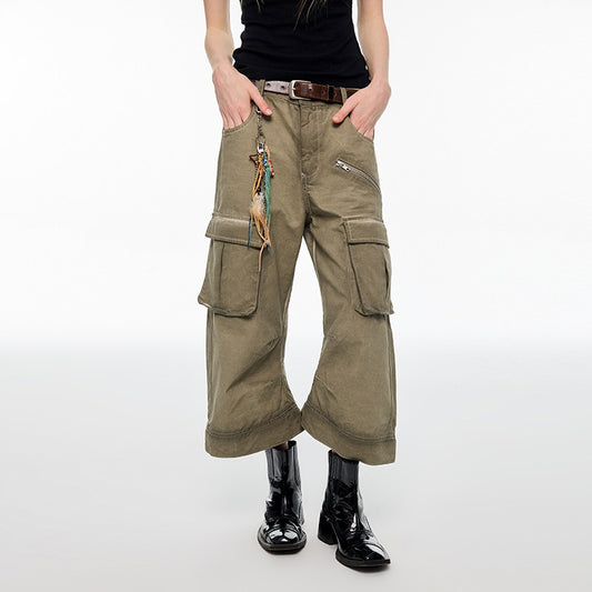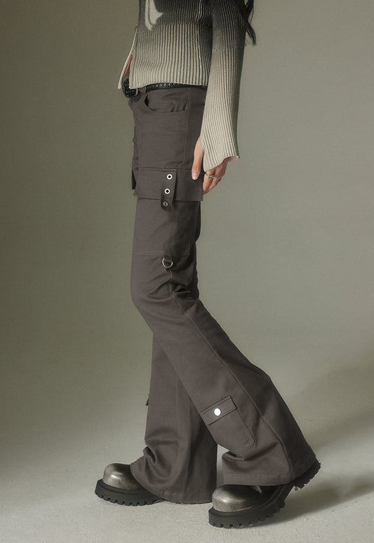 nu209 "Rock Myrrh" low-rise multi-pocket flared pants