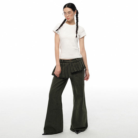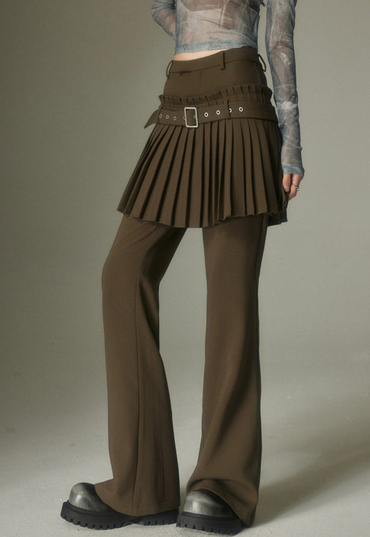 nu132 Fake two-piece pleated culottes / high-waisted flared pants