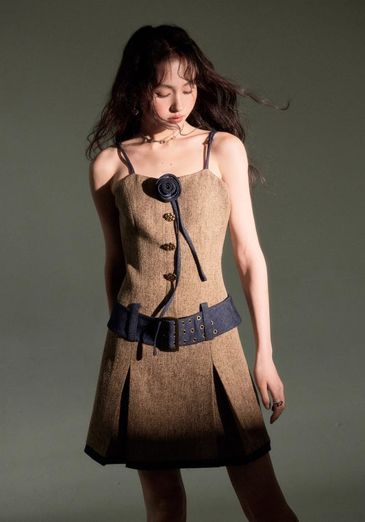 nu175 "Chestnut and Silk" irregular pile collar knitted top suspender two-piece set