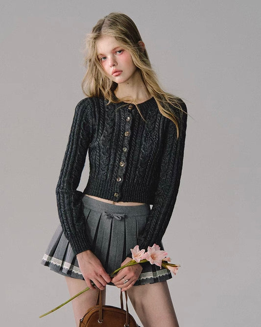 nu171 "Night of Pines and Cypresses" Retro Knitted Cardigan, Two-piece Short Skirt Set