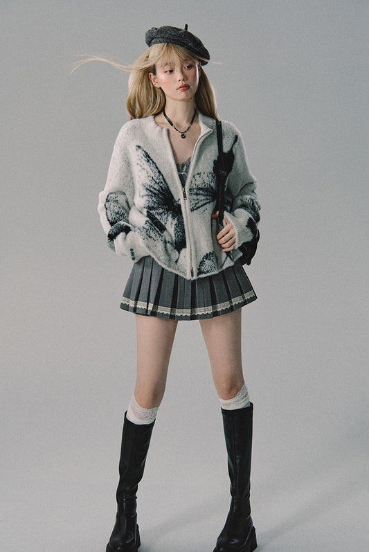 nu160 Butterfly jacquard double zipper cardigan