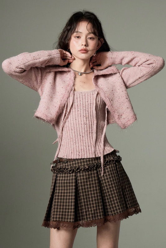 nu147 Retro knitted cardigan + vest two-piece set