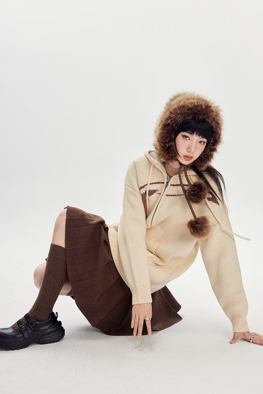 nu175 "Chestnut and Silk" irregular pile collar knitted top suspender two-piece set
