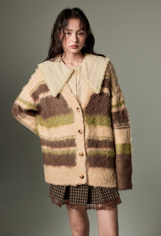 nu146 Contrast striped milk cardigan