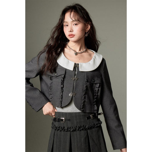 nu154 Round lapel pocket lace short jacket