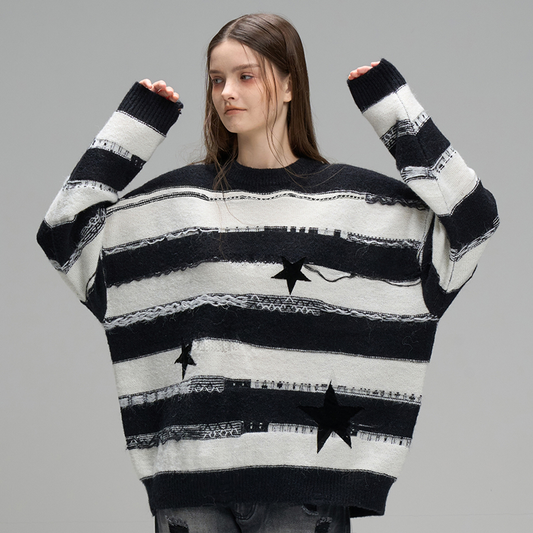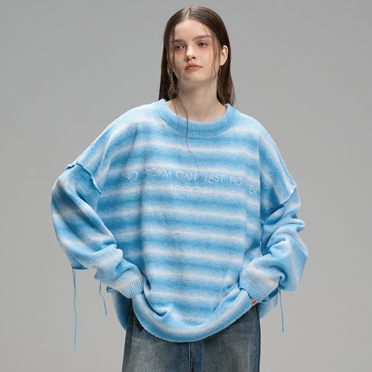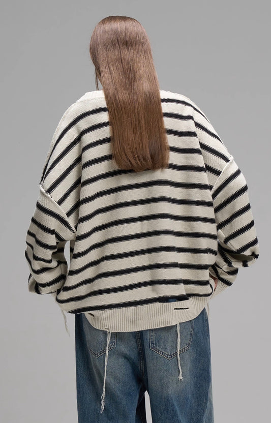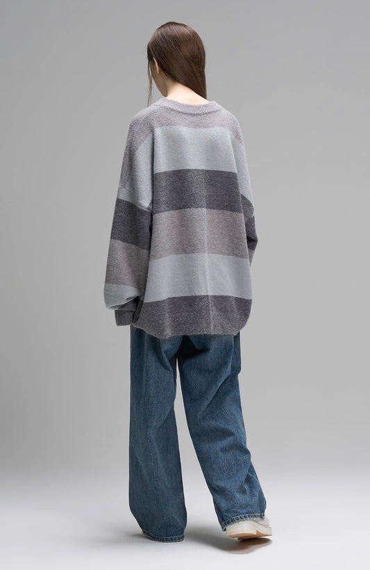 nu12 'Hayes' Grey Stripe Embroidered Crew Neck Sweater
