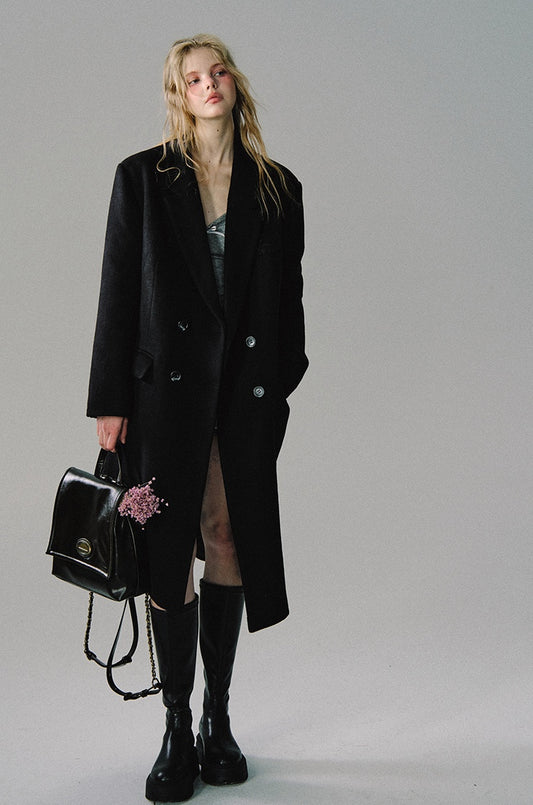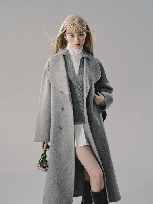 nu323 "Cold and Pure" Old Money Mid-Length Woolen Coat