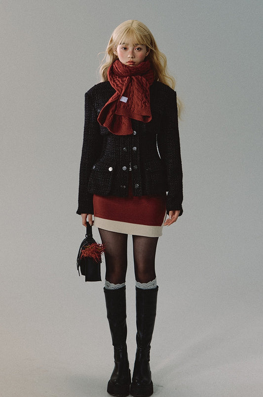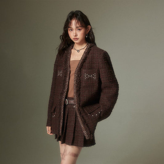 nu329 "Leadership of Woody Tone" Black Tweed Short Jacket