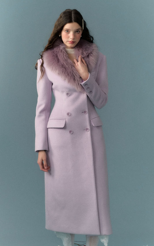 nu293 Taro milk purple double-breasted fur collar woolen coat