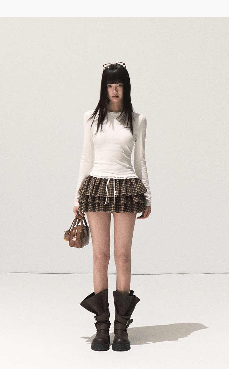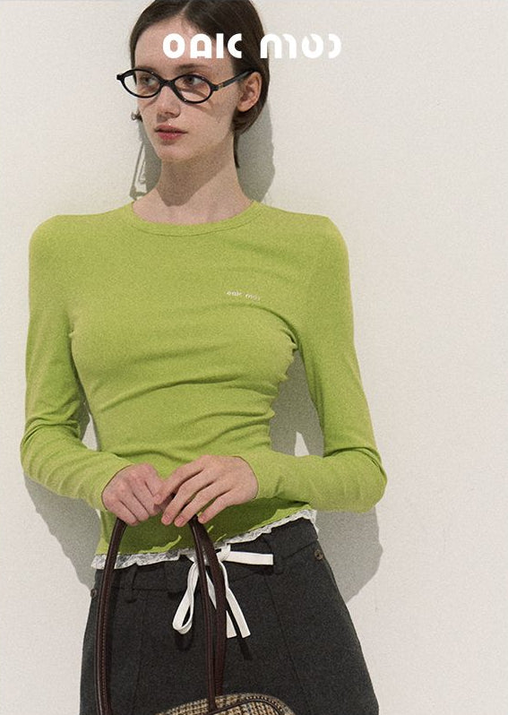 nu380 Lace slim fit waist long sleeved T shirt